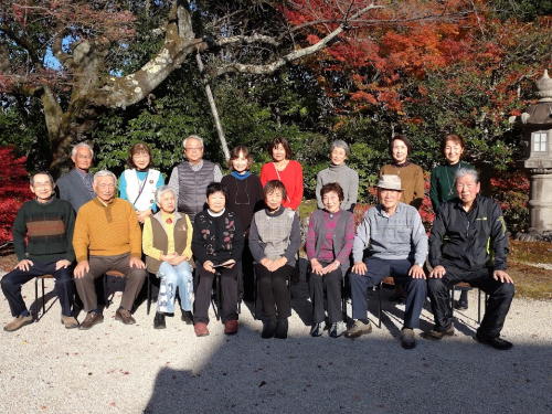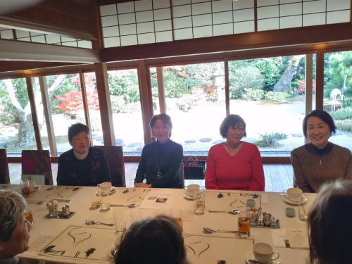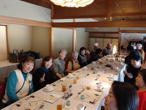 12月5日(金)、大津市のフリアン山ノ上迎賓館でドウダンツツジや紅葉が真っ赤に色づいた庭園をながめ、お食事をとりながらおしゃべりをし、お酒もいただき、たいへん盛り上がった楽しい一時を過ごしました。参加人員:16名(男性6名、女性10名)