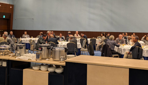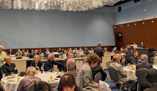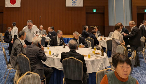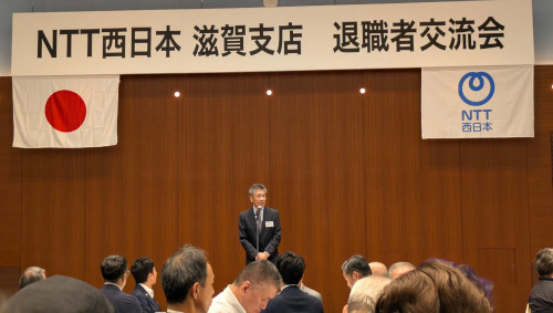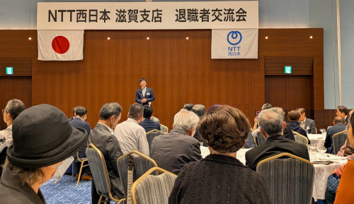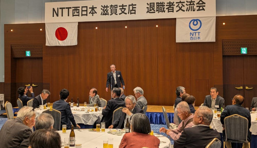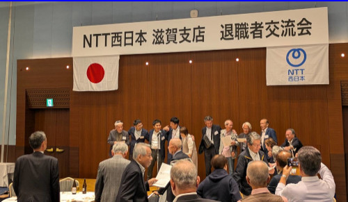 NTT主催の2025年度「電電記念日退職者交流会」は10月24日(木)に琵琶湖ホテル瑠璃の間に200名(NTT側5名含む)の退職者等が参加して盛大に開催されました。